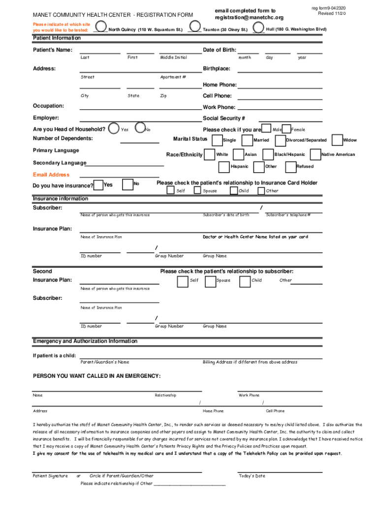 Please indicate at which site you would like to be tested: North Quincy (110 W. Quantum St.)reg form9042320 Revised 11/20email completed form to registration match. Organ COMMUNITY HEALTH CENTER REGISTRATION