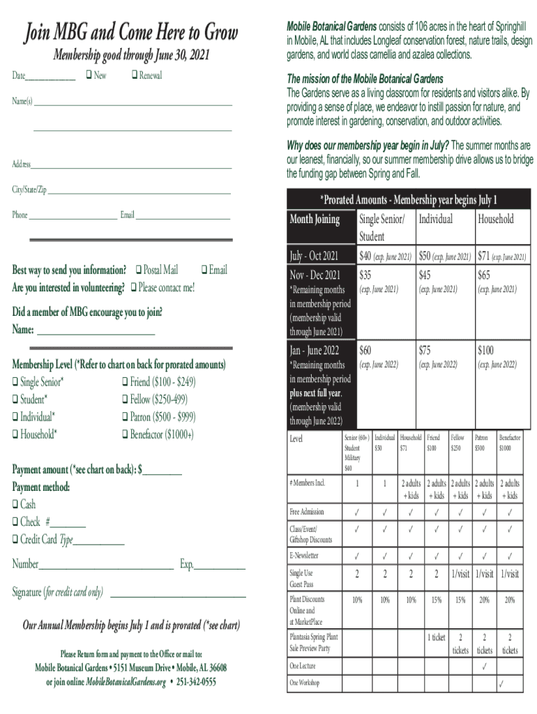 Join BMG and Come Here to Grow Membership good through June 30, 2021Date New RenewalName(s) Address City/State/Zip Phone Email Best way to send you information? Postal Mail Email Are you interested