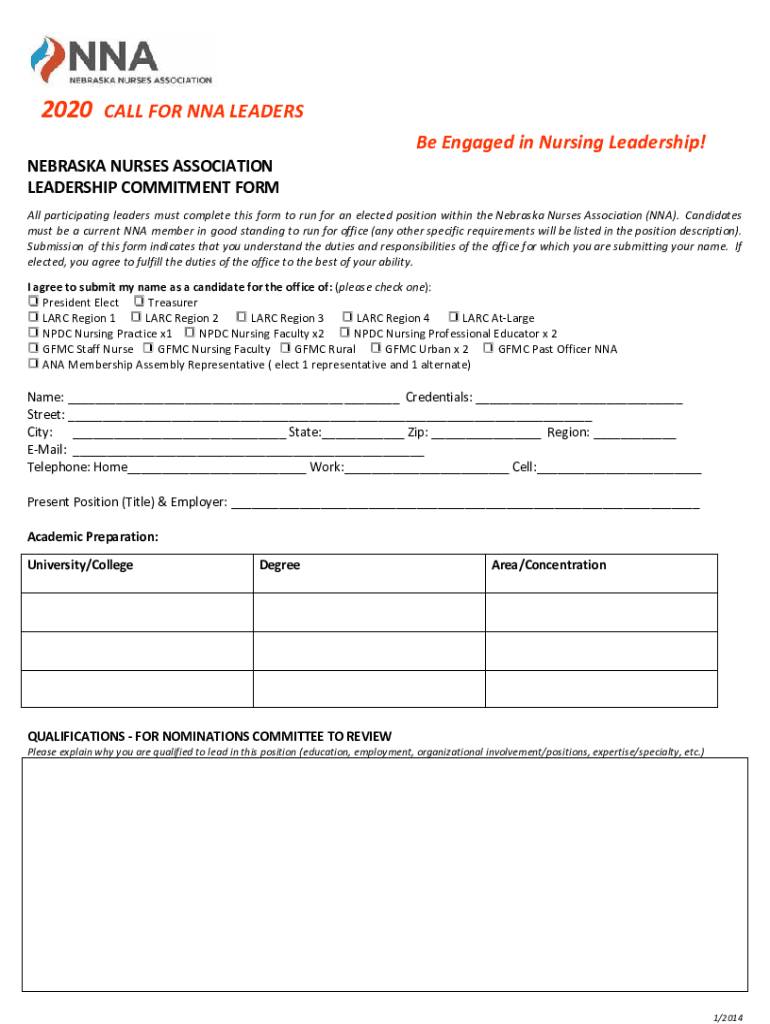LEADERSHIP COMMITMENT FORM Be Engaged in Nursing Leadership! All participating leaders must complete this form to run for an elected position