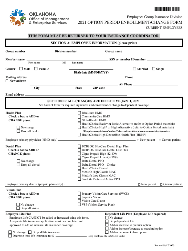Employees Group Insurance Division2021 OPTION PERIOD ENROLLMENT/CHANGE FORM