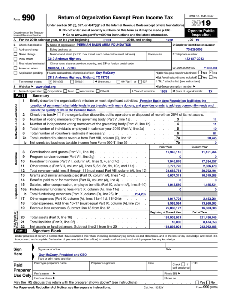 Form990Return of Organization Exempt From Income Tax OMB No. 154500472019Under section 501(c), 527, or 4947(a)(1) of the Internal Revenue Code (except private foundations) Department of the Treasury