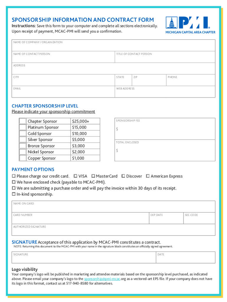 SPONSORSHIP INFORMATION AND CONTRACT FORMInstructions: Save this form to your computer and complete all sections electronically.