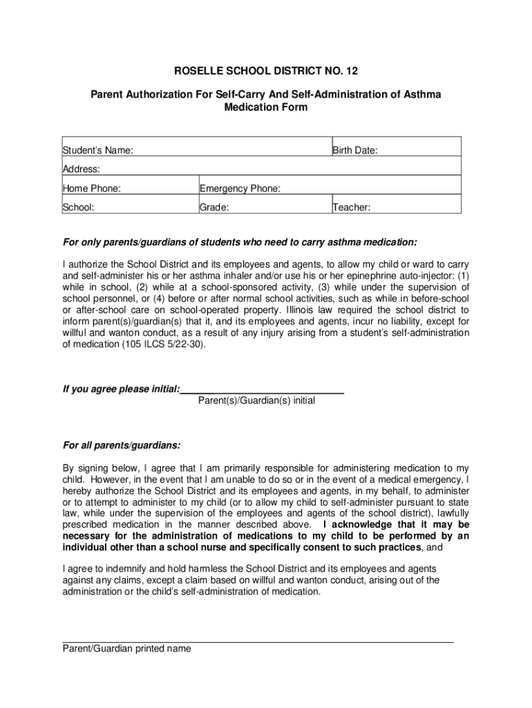 Parent Authorization For SelfCarry And Maladministration of Asthma