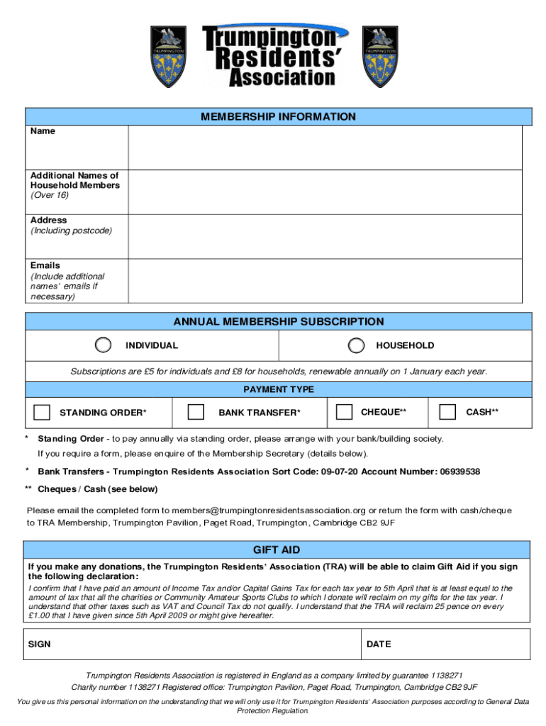 MEMBERSHIP INFORMATION NameAdditional Names of Household Members (Over 16) Address (Including postcode)Emails (Include additional names emails if necessary)ANNUAL MEMBERSHIP SUBSCRIPTION INDIVIDUALHOUSEHOLDSubscriptions