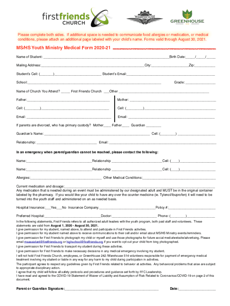 Please complete both sides. If additional space is needed to communicate food allergies or medication, or medical conditions, please attach an additional page labeled with your children name. Forms