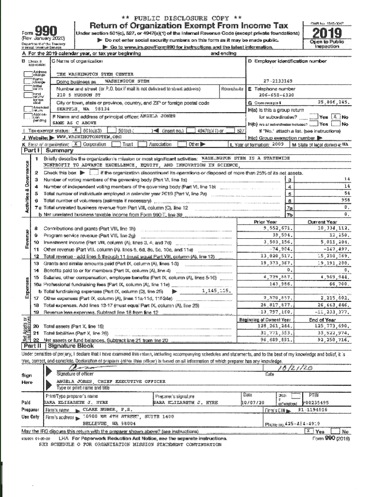 THE WASHINGTON STEM CENTER Part III Statement of Program Service Accomplishments272133169Form 990 (2019)Page 2Check if Schedule O contains a response or note to any line in this Part III 12Briefly