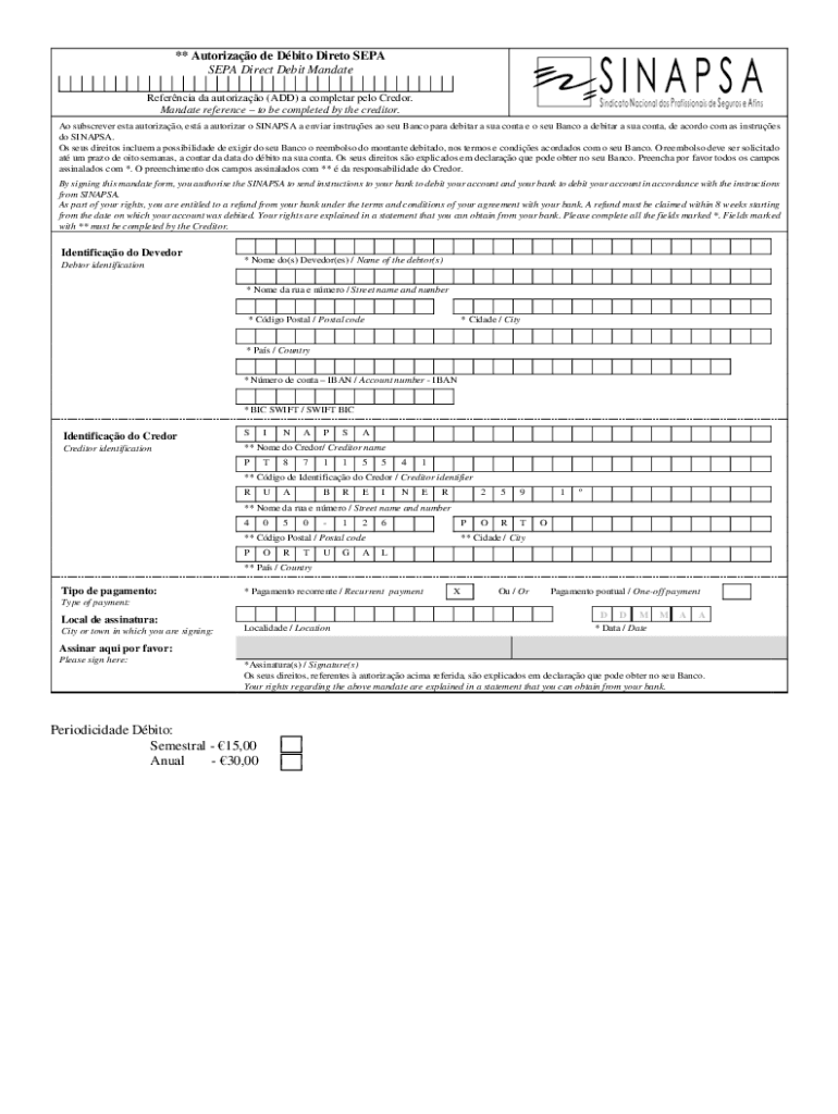 Obtain the direct debit authorization SEPA form from your bank or financial institution.
