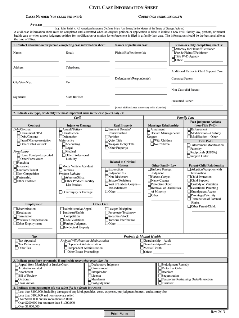 Get the free Civil Case Information Sheet