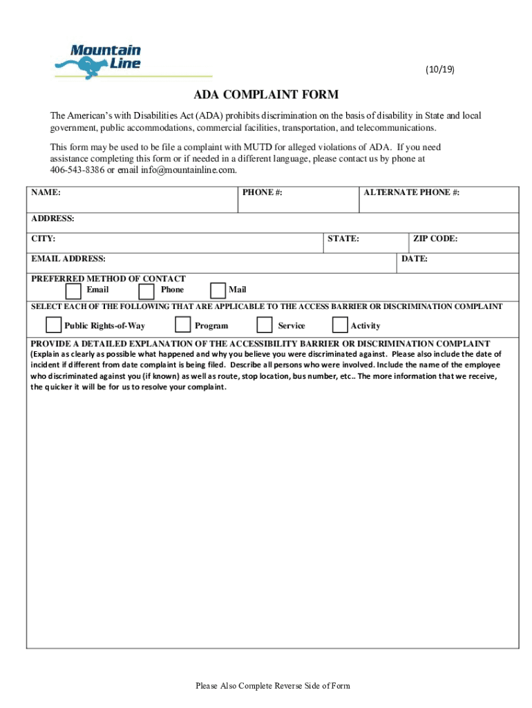 (10/19)ADA COMPLAINT FORM