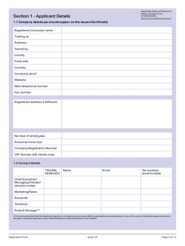 Application for BBA Product Assessment and Certification (Agent and HAAS Application Form) 2020 British Board of Agent. All Rights reserved. 180601, Issue 18. Section 1 Applicant Details1.1 Company