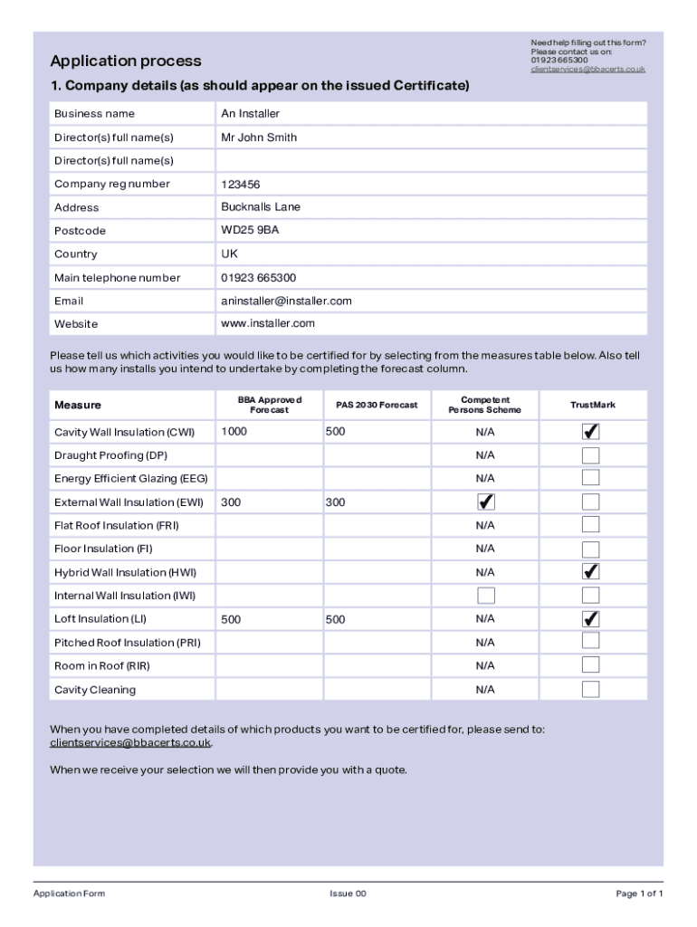 clientservices@bbacerts.co.ukApplication process1. Company details (as should appear on the issued Certificate)
