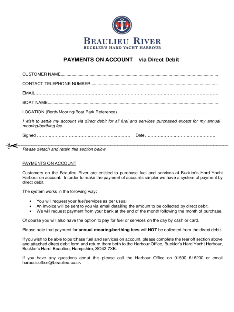 PAYMENTS ON ACCOUNT via Direct Debit CUSTOMER NAME................................................................................................................................... CONTACT TELEPHONE