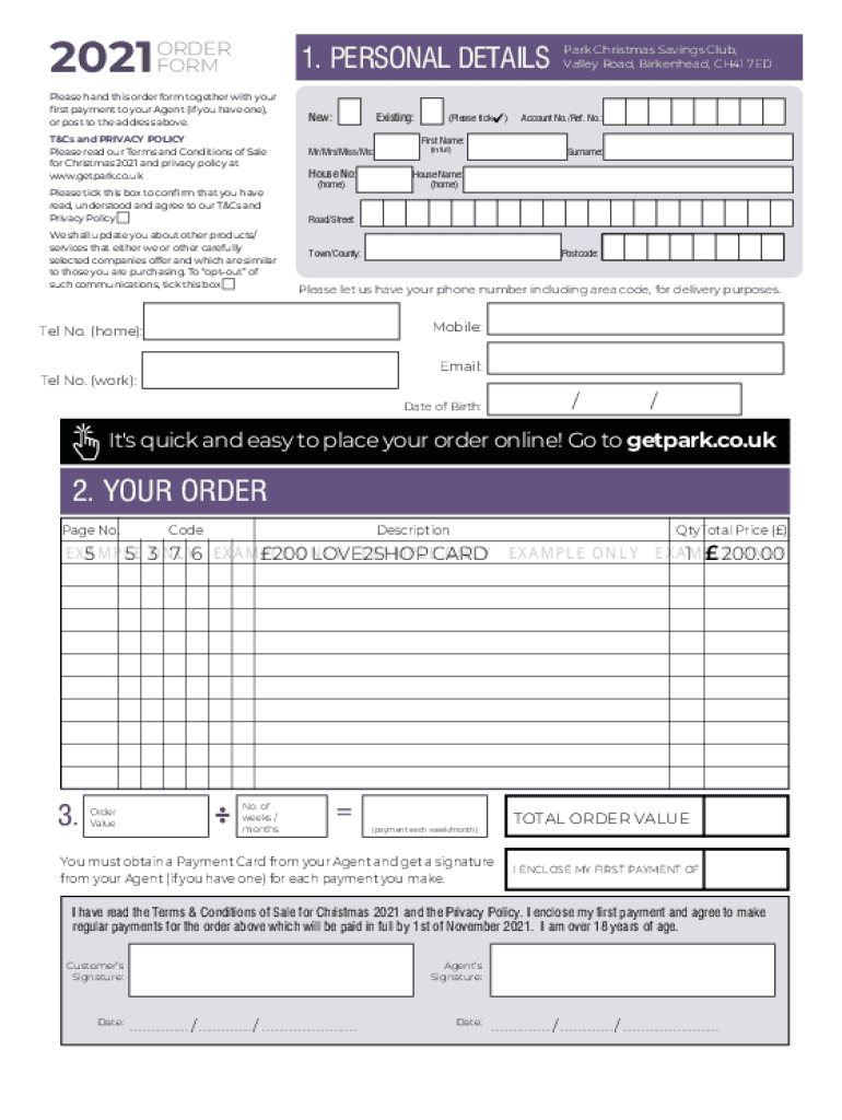 2021 ORDER FORM1. PERSONAL DETAILSPlease hand this order form together with your first payment to your Agent (if you have one), or post to the address above. Tics and PRIVACY POLICY Please read our