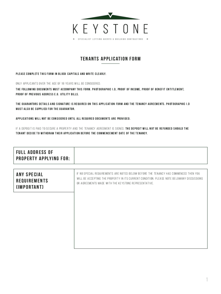 Tenants application form
