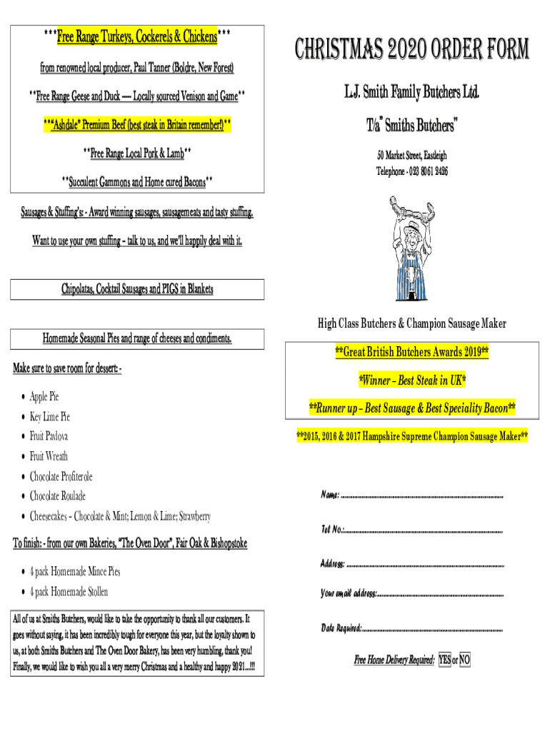 ***Free Range Turkeys, Cockerels & Chickens*** from renowned local producer, Paul Tanner (Bolder, New Forest)Christmas 2020 Order Form**Free Range Geese and Duck Locally sourced Venison and Game**L.J.