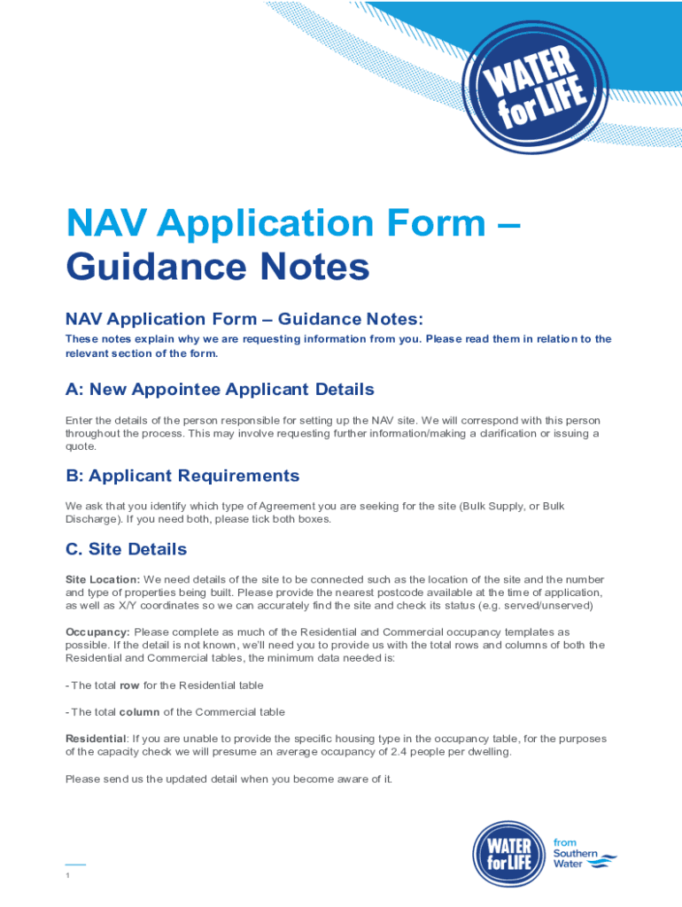 NAV Application Form Guidance Notes NAV Application Form Guidance Notes: These notes explain why we are requesting information from you. Please read them in relation to the relevant section of the