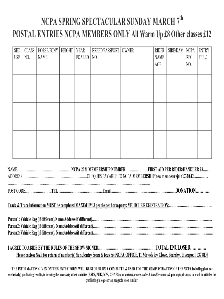 Get the free NCPA was formed in ... - Northern Counties Pony Association - thencpa co