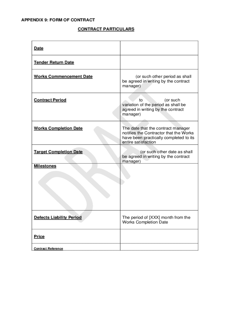 APPENDIX 9: FORM OF CONTRACT PARTICULARSDateTender Return Waterworks Commencement Date(or such other period as shall