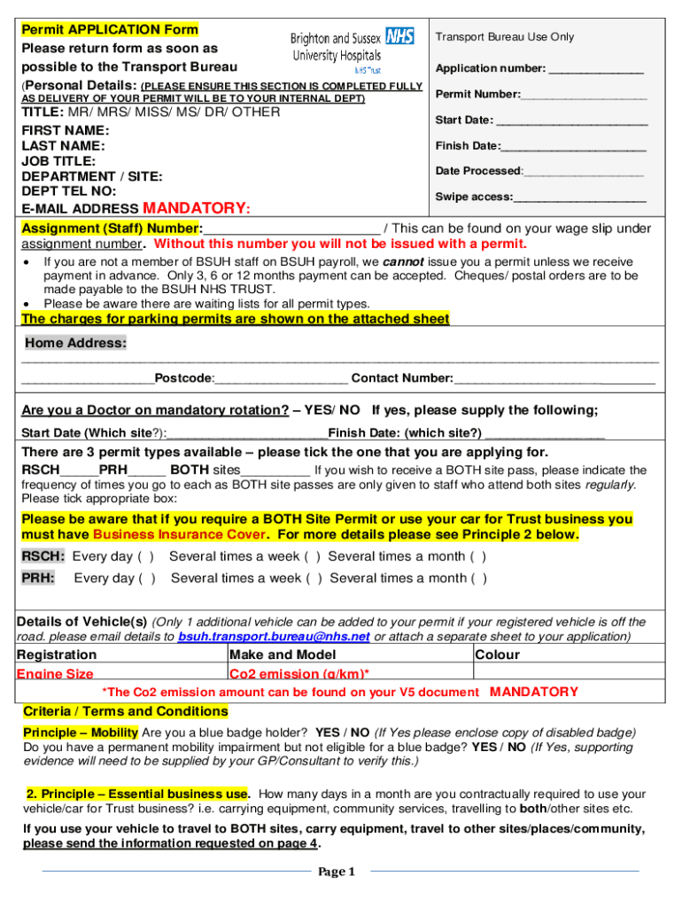 Permit APPLICATION Form Transport Bureau Use Only Please return form as soon as possible to the Transport Bureau Application number: (Personal Details: (PLEASE ENSURE THIS SECTION IS COMPLETED FULLY