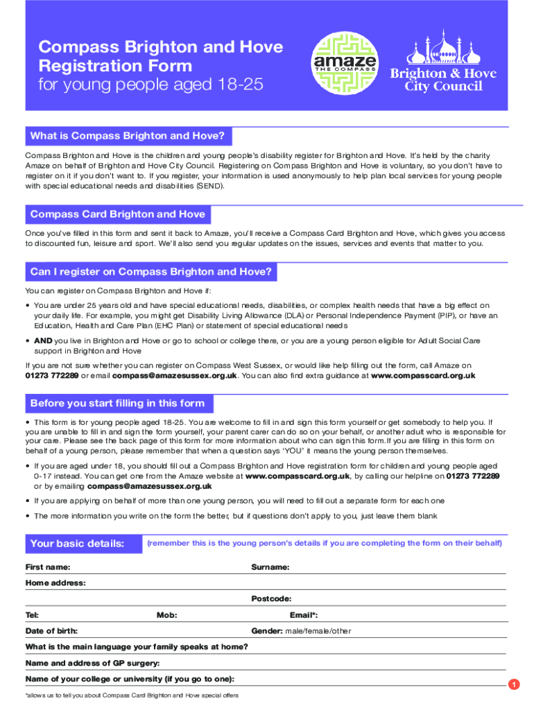 Compass Brighton and Hove is the children and young peoples' disability register for Brighton