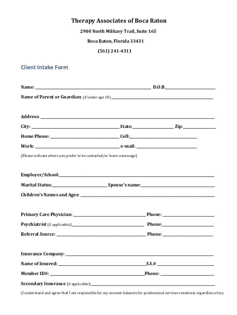Get the free Therapy Associates of Boca Raton Client Intake Form