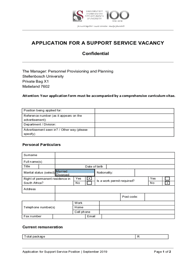APPLICATION FOR A SUPPORT SERVICE VACANCY