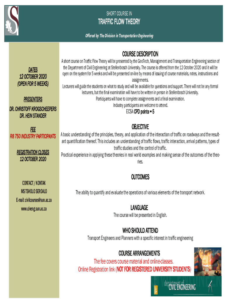 Get the free Transportation Engineering: Traffic Flow Theory - for Individuals