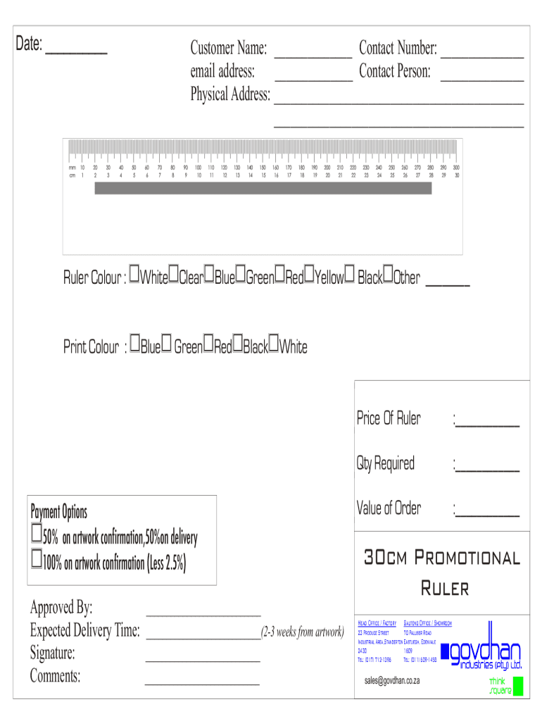 Date: mm cm10 120 230 3Customer Name: Contact Number: email address: Contact Person: Physical Address: 40 450 560 670 780 890 9100 10110 11120 12130 13140 14150 15160 16170 17180 18190 19200 20210