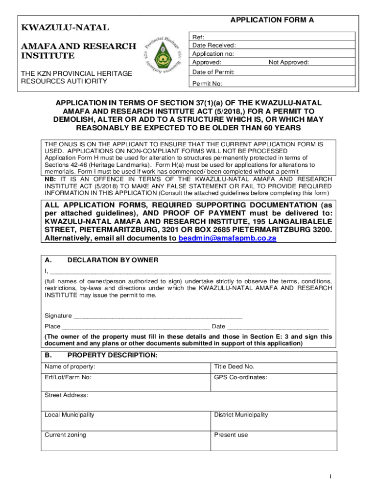 Get the free APPLICATION FORM I (for Official Use) KWAZULU-NATAL Ref ...