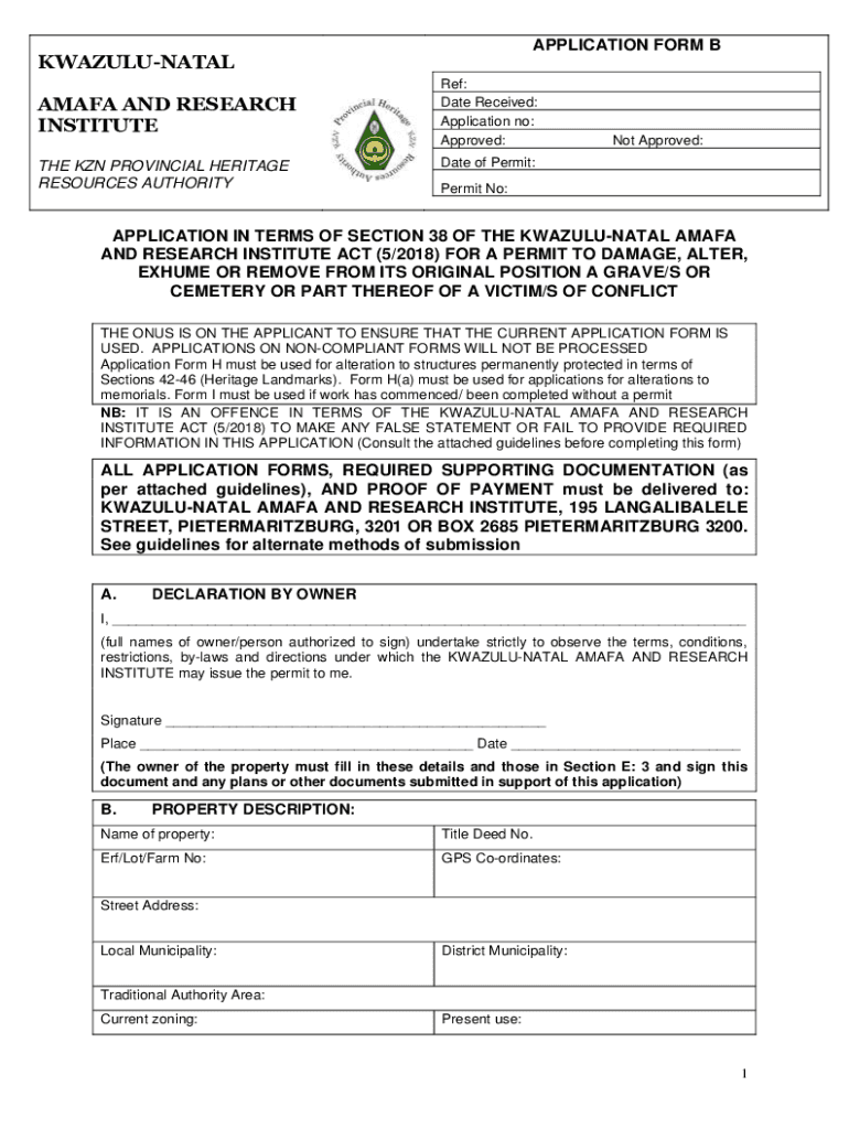 Get the free APPLICATION FORM B KWAZULU-NATAL Ref: Date Received: AMAFA ...