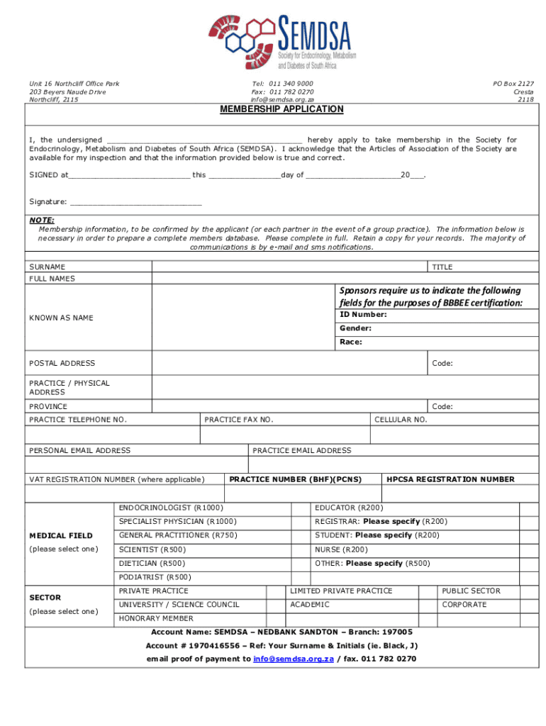 Unit 16 North cliff Office Park 203 Beyer's Maude Drive North cliff, 2115Tel: 011 340 9000 Fax: 011 782 0270 info seeds.org.capo Box 2127 Crest 2118MEMBERSHIP APPLICATION I, the undersigned hereby