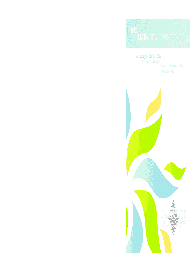2012 2012 FUNERAL SERVICE CONFERENCE REGISTRATION FORM Information Wednesday, October 24, 2012 8:00 a.m. 4:00 p.m. Name: Address: City: State: Zip: Daytime Phone: Evening Phone: Email: Company: Male/Female: