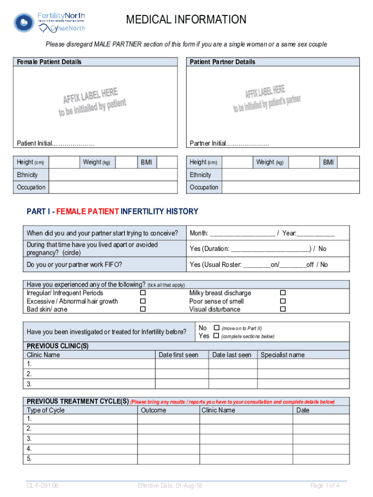 MEDICAL INFORMATION Please disregard MALE PARTNER section of this form if you are a single woman or a same-sex couple Female Patient DetailsPatient Partner DetailsPatient InitialPartner InitialHeight