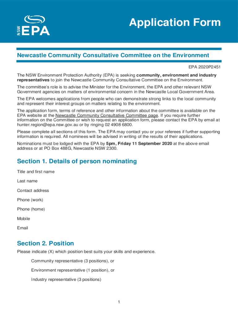 Get the free Newcastle Community Consultative Committee on the Environment application form