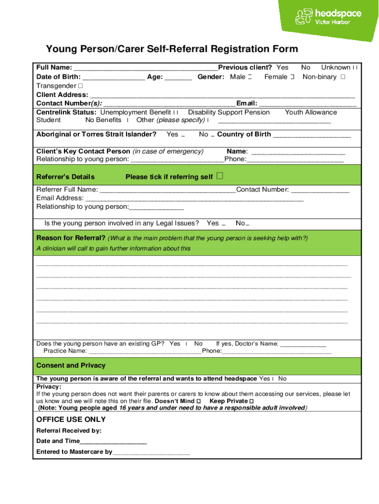 Young Personcarer Self-Referral Registration is not the form you're looking for?Search for another form here.