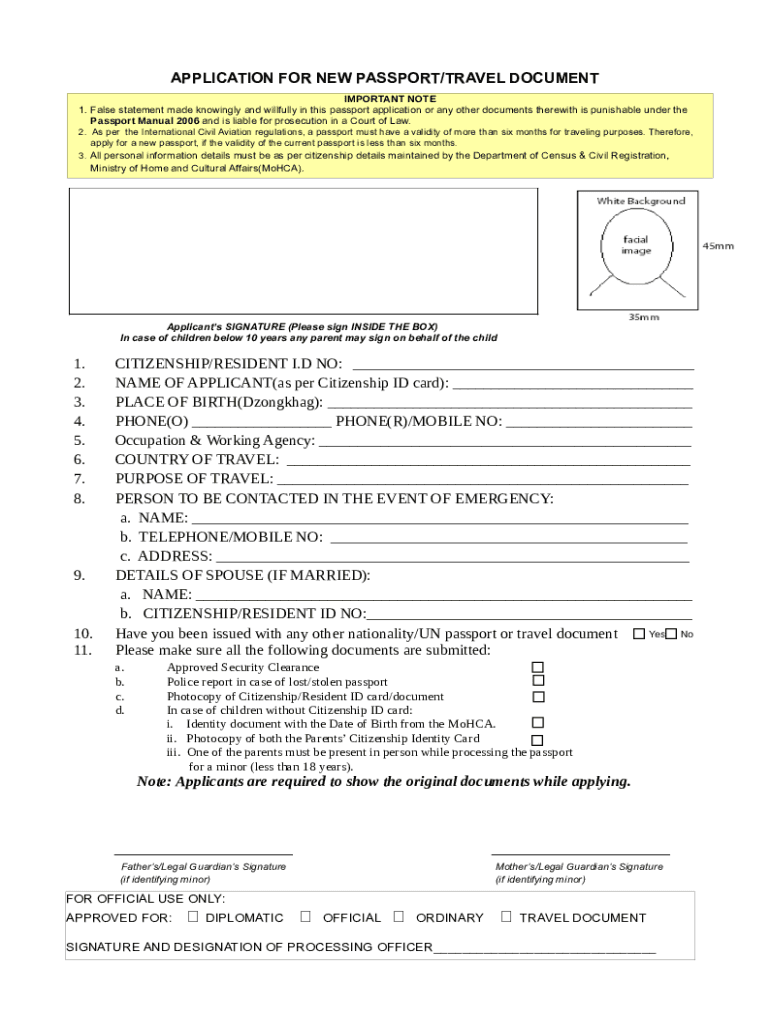 APPLICATION FOR NEW PASSPORT/TRAVEL DOCUMENT