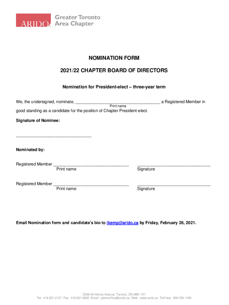 Get the free NOMINATION FORM 2021/22 CHAPTER BOARD OF DIRECTORS