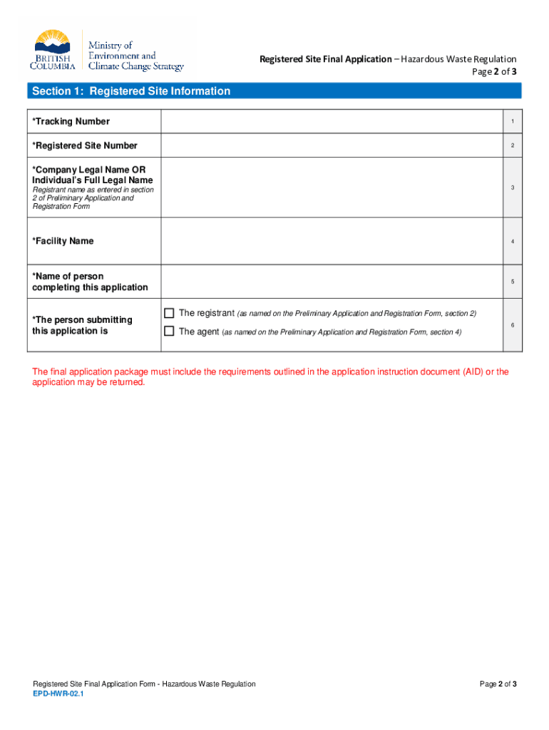 Get the free Registered Site Final Application Form
