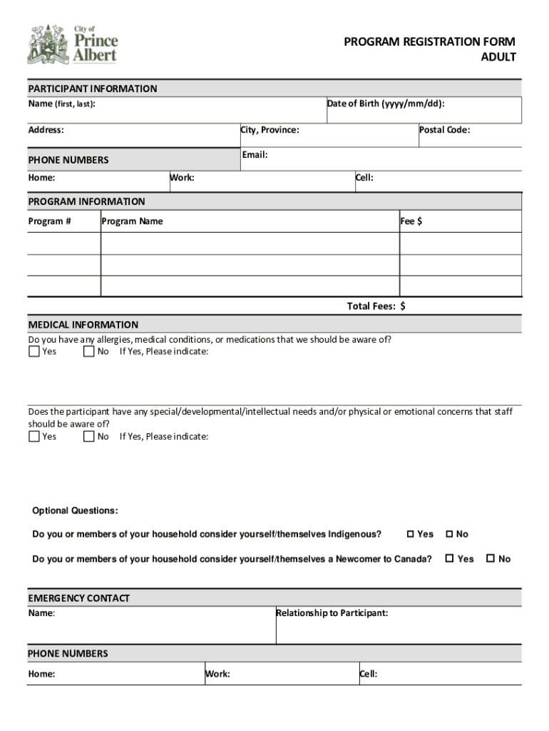 Edit your program registration form adult form online