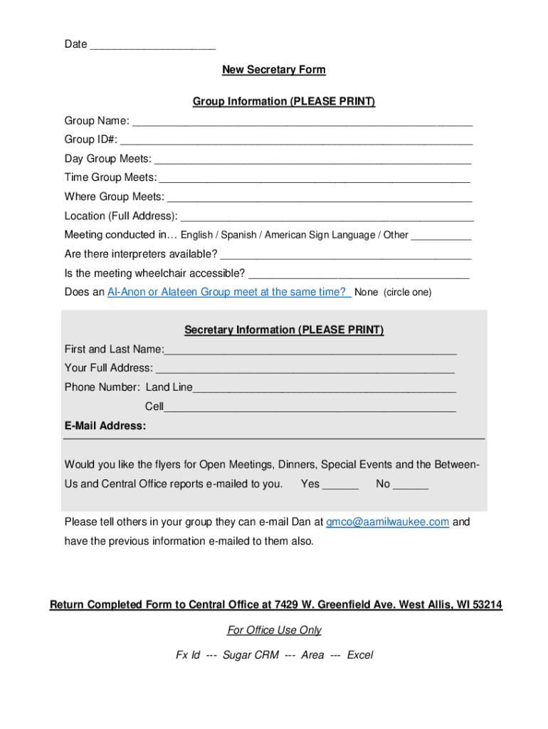 Get the free New Secretary Form