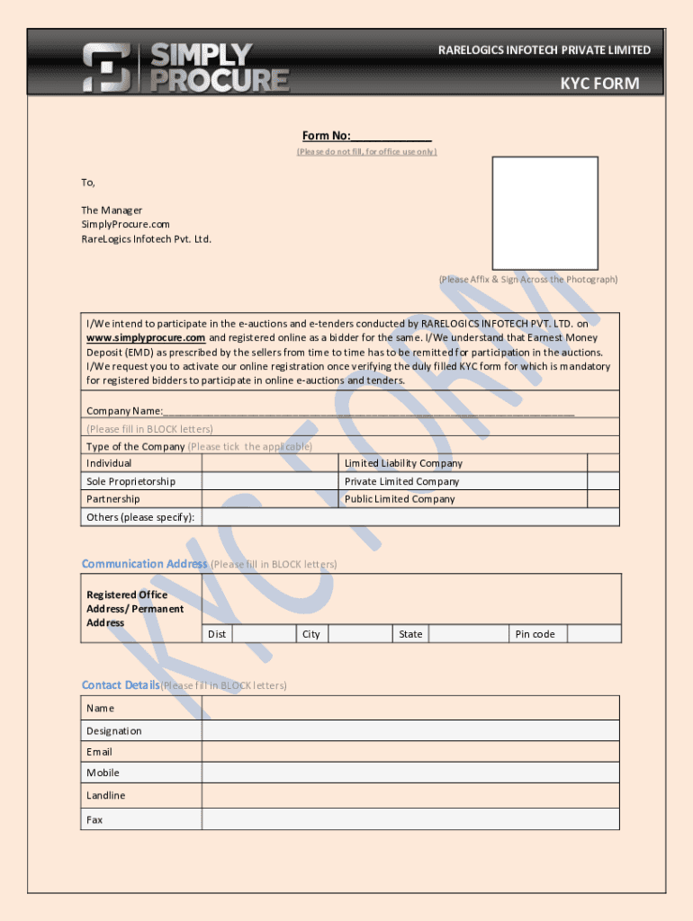 CoreLogic INFOSEC PRIVATE LIMITED FORM No: (Please do not fill, for office use only)To, The Manager SimplyProcure.com Harmonics Info tech Pvt. Ltd.(Please Affix & Sign Across the Photograph)I/We intend