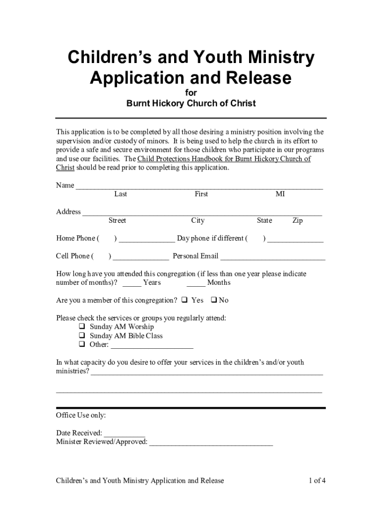 This application is to be completed by all those desiring a ministry position involving the