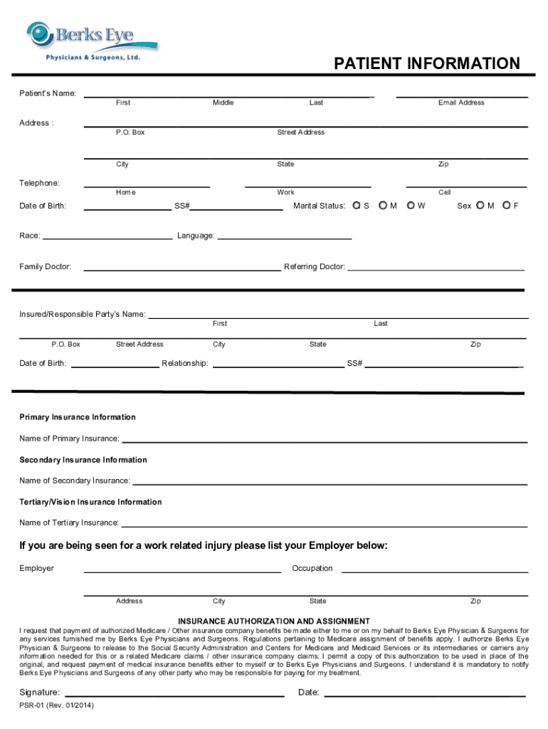 Get the free PATIENT INFORMATION - Berks Eye Physicians & Surgeons, Ltd.