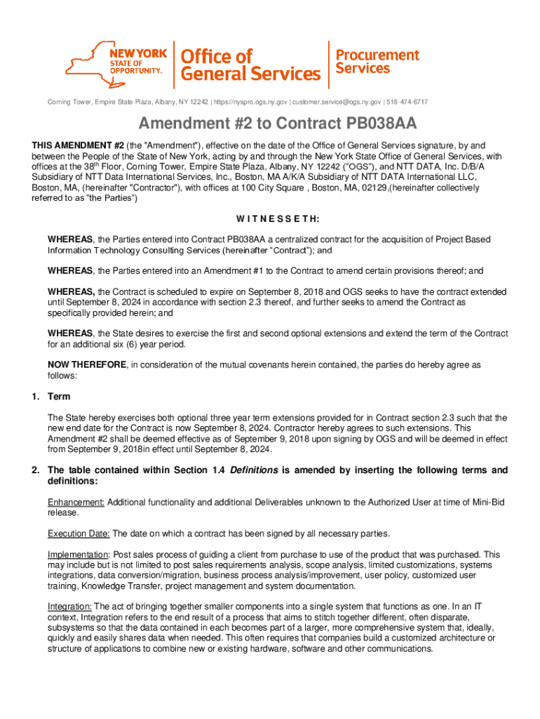 Get the free Amendment #2 to Contract PB038AA