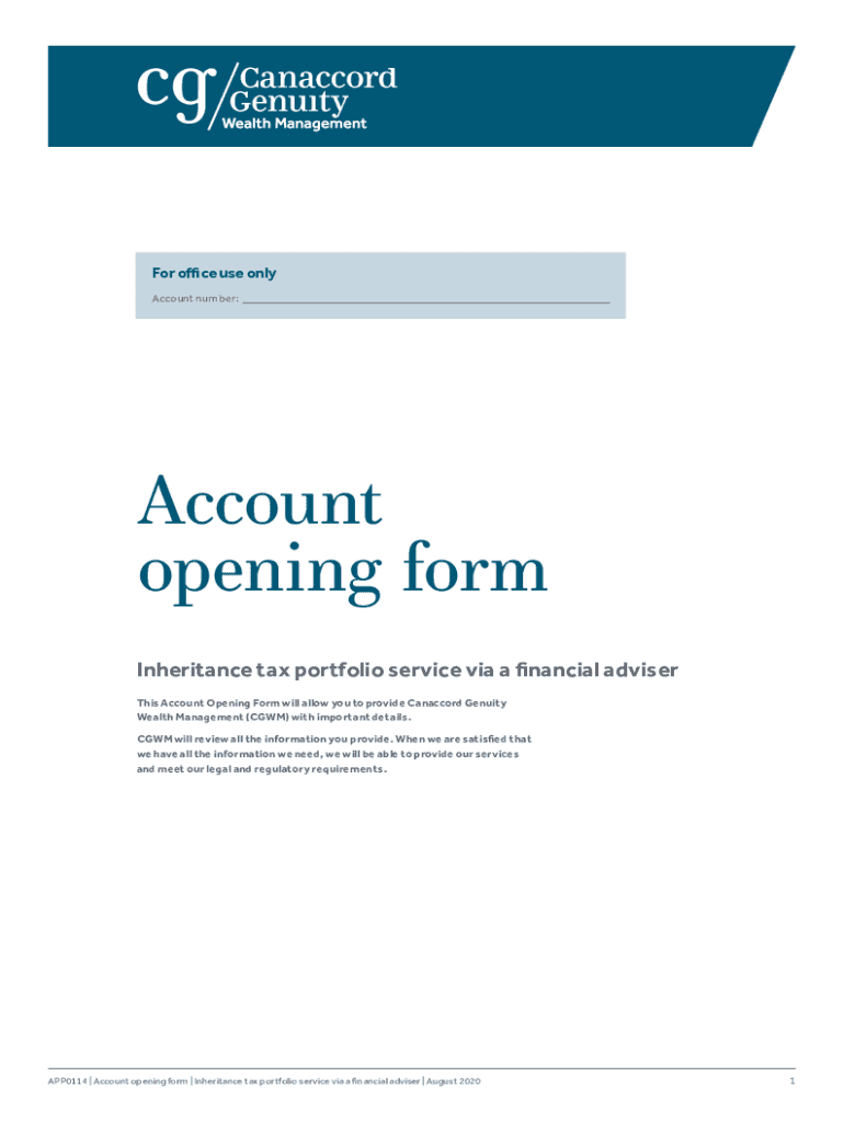 For office use only Account number:Account opening form Inheritance tax portfolio service via a financial adviser This Account Opening Form will allow you to provide Can accord Tenuity Wealth Management