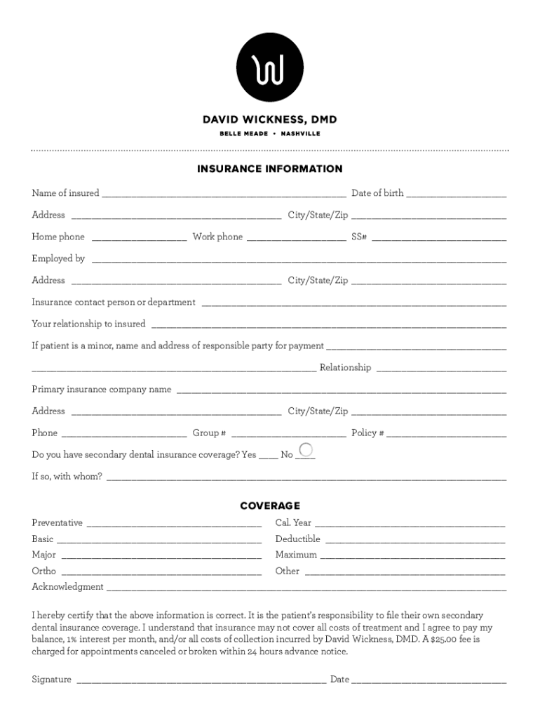 Get the free PDF INSURANCE INFORMATION COVERAGE - David Wickness, DMD
