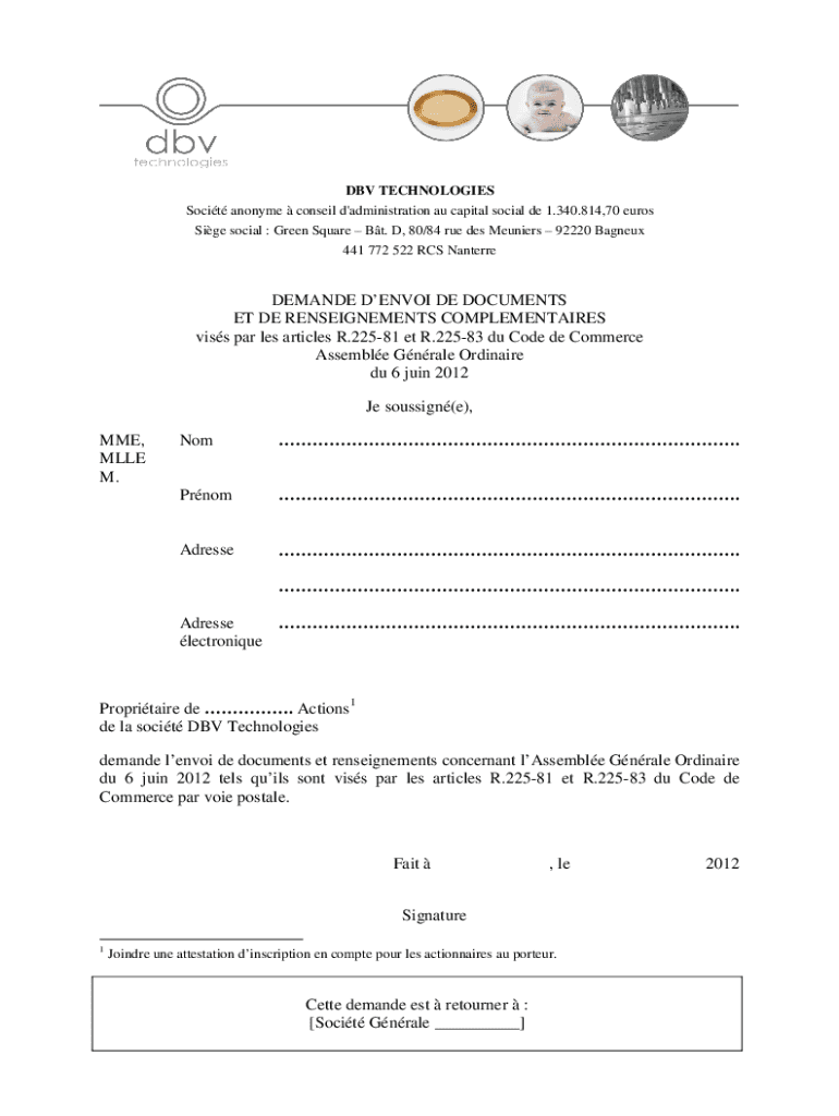 DB TECHNOLOGIES So cit antonym Conrail d 'administration Au capital social DE 1.340,814.70 euros Side social : Green Square BT. D, 80/84 rue DES Meunière 92220 Seigneur 441 772 522 RCS NanterreDEMANDE