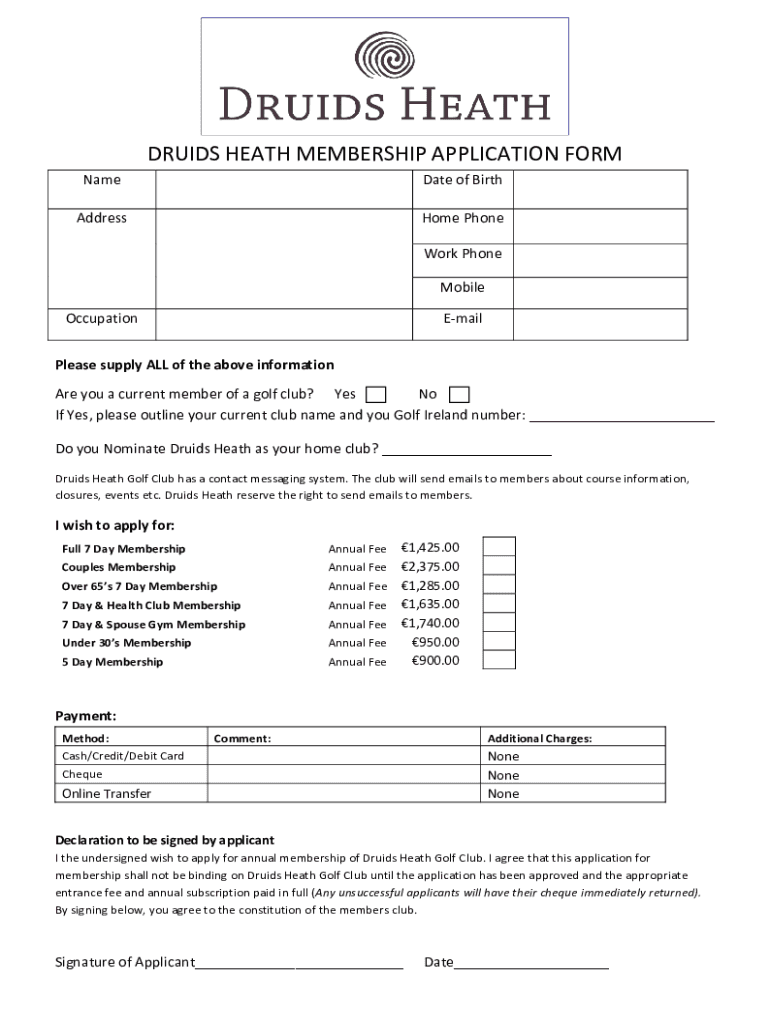 To fill out Druids Heath membership application, follow these steps: