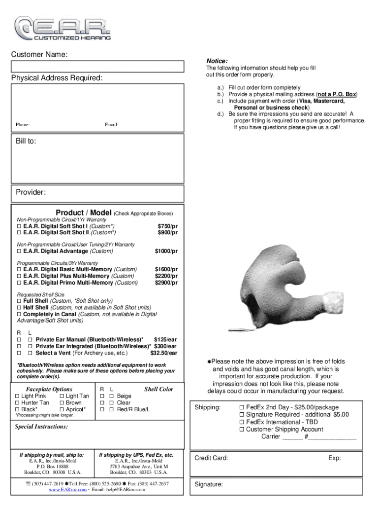 Individuals who require customized hearing aids are required to file ear customized hearing.