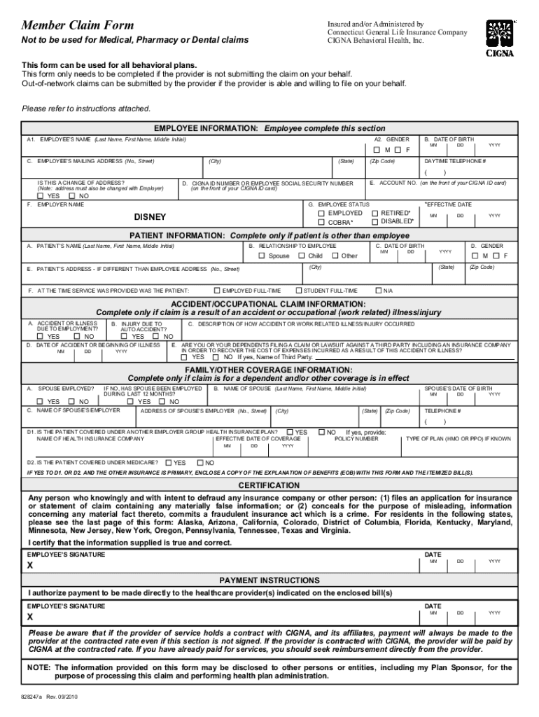 CHINA Behavioral Health, Inc. Not to be used for Medical, Pharmacy or Dental claimsThis form can be used for